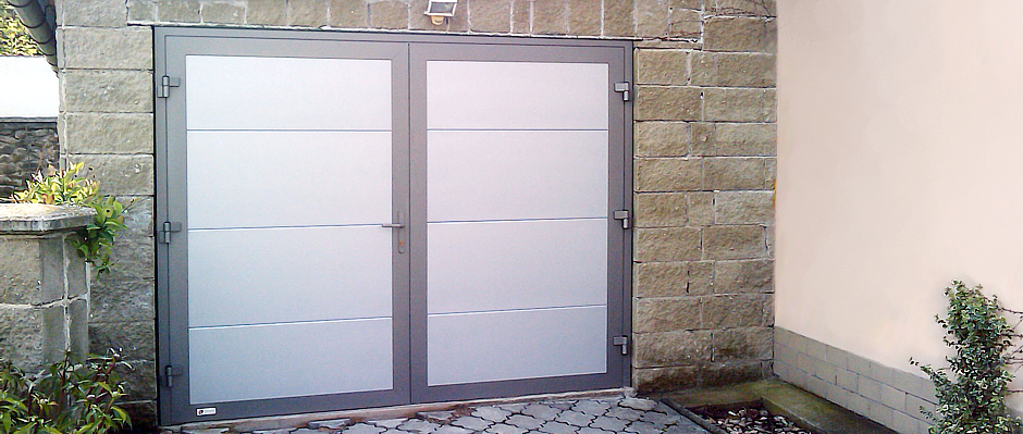 Dvoukřídlá garážová vrata s přerušeným i s nepřerušeným tepelným mostem představují zajímavou alternativu ke klasickým sekčním, rolovacím nebo posuvným vratům. Jsou ideální do garáže s minimálním ostěním a nadpražím. Montáž dvoukřídlých garážových vrat probíhá vždy do otvoru. Garážová dvoukřídlá vrata je možné doplnit pevným nadsvětlíkem nebo použít zasklení pomocí hliníkového příčníku.
